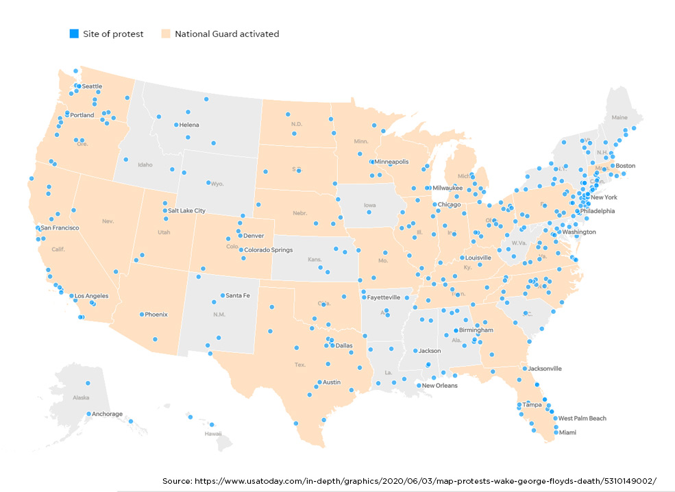 Tracking protests across the USA in the wake of George Floyd’s death